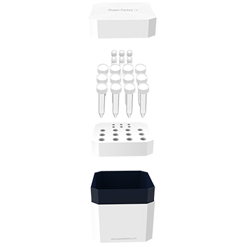 Protein Factory encompasses the full elements for mRNA transcription and protein translation. Just add DNA template, buffer to the product powder, at room temperature (20 - 30℃) , 1 to 2 hours, the target protein will be made. No complicated operations or auxiliary equipment required, save your time and energy.